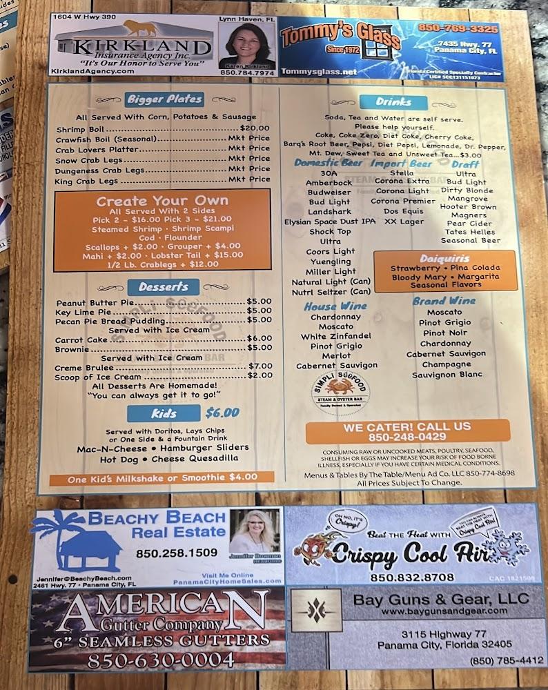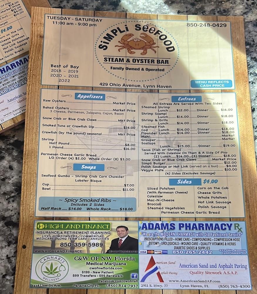 Welcome to Simpli Seefood Market & Oyster Bar, your premier destination for fresh seafood in Lynn Haven, FL. Located at 429 Ohio Ave, we offer a relaxed atmosphere perfect for lunch, dinner, or solo dining. Indulge in our excellent desserts and a wide selection of local specialties, paired with your favorite beer or wine. Enjoy our spacious outdoor terrace, or opt for convenient takeout and contactless delivery services. With accessible seating and restrooms, everyone can savor our simple yet delicious meals. Join us today to experience fast service and a delightful culinary journey!
